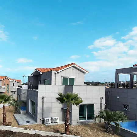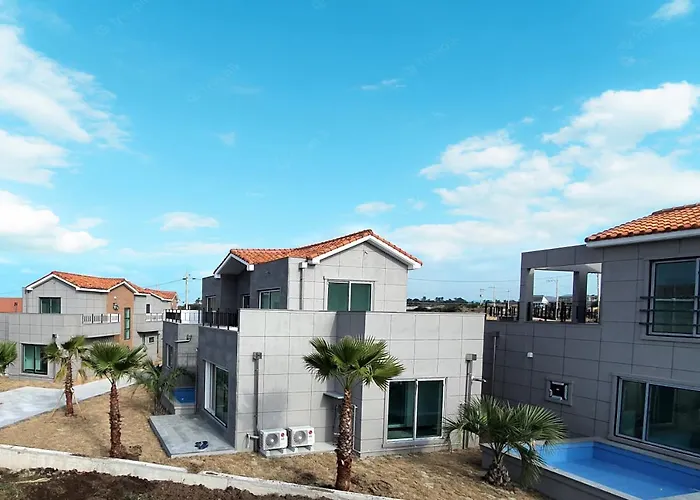 Located in the Hangyeong district, the 3-bedroom Wonderpool Pension Jeju villa is 3.6 km from Hallimgongwon Park and offers a Jacuzzi. This property includes complimentary private parking and a terrace with views of the sea.